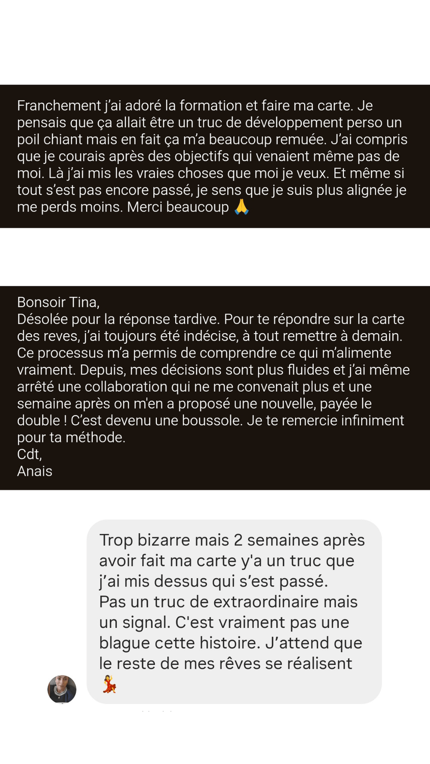 Mais si tu te lances, l’outil central qui va t’accompagner tout au long de cette transformation, c'est La Carte des Rêves. Bien plus qu’un simple support visuel, c’est un véritable catalyseur énergétique qui, lorsqu’il est construit avec les bonnes méthodes, devient un levier pour attirer et concrétiser tes désirs.